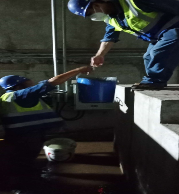 在搶修隊(duì)伍的努力下,終于結(jié)束了這場(chǎng)“槍淋彈雨”的“戰(zhàn)斗”。但是水洗泵房仍然有很多積水,大家又?jǐn)]起袖子清理泵房積水。由于水洗泵房沒有排水道且處于低地,只能人工用桶運(yùn)輸。