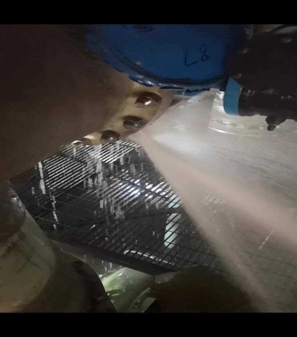 6月9日15點(diǎn),山西藍(lán)鼎360脫硫脫硝水洗泵突發(fā)故障,在備用泵無法正常工作情況下,生產(chǎn)、檢修和電儀齊心協(xié)力在水中作業(yè),緊急處理清水池2#、3#水洗泵閥門漏水,清理1#水洗泵濾網(wǎng)雜物,經(jīng)過近3小時(shí)的努力,設(shè)備恢復(fù)正常運(yùn)行。