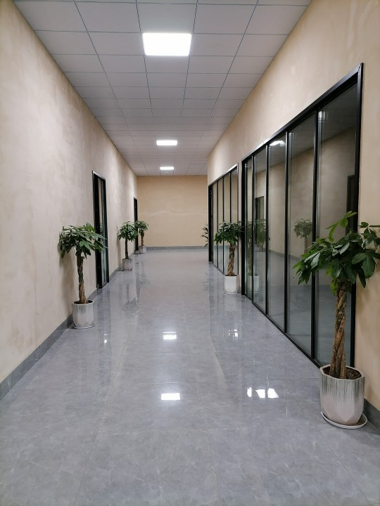 新辦公樓采用西昌藍(lán)花楹建材生產(chǎn)的石膏砌塊作為隔墻,藍(lán)花楹輕質(zhì)抹灰石膏作為墻面裝飾材料,安全環(huán)保無甲醛。裝修采用現(xiàn)代風(fēng)格,搭配綠色植物裝飾。