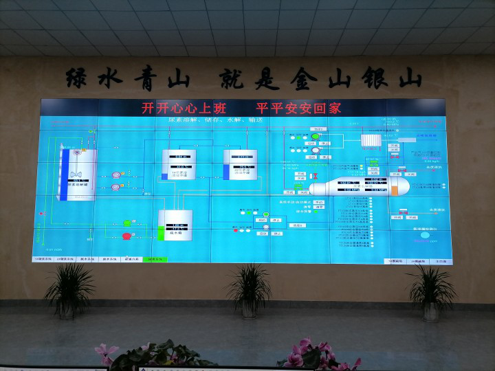 新中控室35臺55寸京東方顯示器拼接成超大顯示屏,生產(chǎn)運(yùn)行情況盡收眼底。透明的玻璃推拉門,實(shí)現(xiàn)了天然采光的功能,寬敞明亮。樓道照明采用人體感應(yīng)控制,實(shí)現(xiàn)了自動開關(guān)燈。